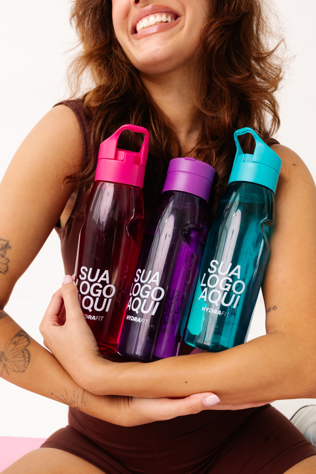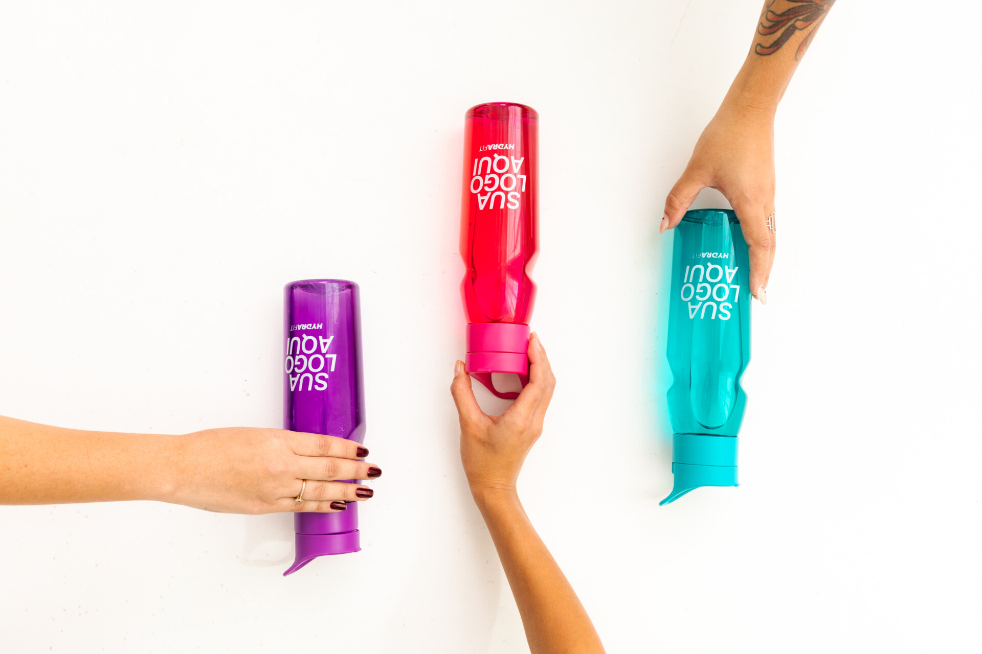 Galãopersonalizado HydraGo 750ml em plástico PET, livre de BPA. Produto super resistente, durável e disponível nas cores Cristal, Rosa, Lilás, Turquesa, Laranja e Fumê com Várias opções de cores para a tampa com bico sport. Ideal para empresas, academias, brindes e eventos.